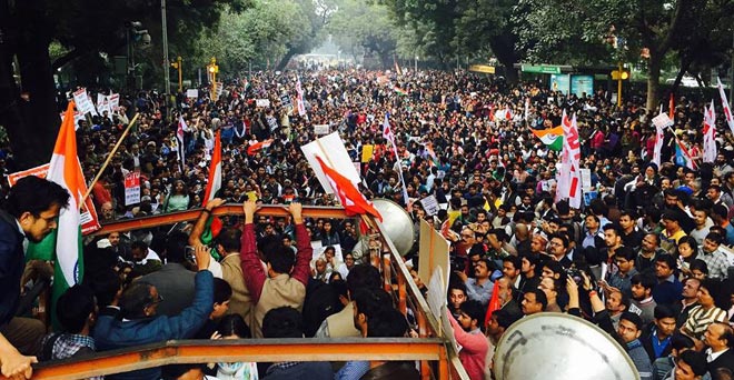 राजधानी दिल्ली के अलावा देश भर के कई संगठनों और विश्वविद्यालयों के छात्रों ने जेएनयू के खिलाफ चलाई जा रही मुहिम का विरोध किया है। मंडी हाउस से जंतर-मंतर तक निकले इस विशाल मार्च के जरिये राजद्रोह के आरोप में गिरफ्तार कन्हैया कुमार की रिहाई के लिए भी आवाज उठाई। बड़ी तादाद में जेएनयू के पूर्व छात्रों और जेएनयू से सहानुभूति रखने वाले लोगों ने शांतिपूर्ण तरीके से निकले इस मार्च में हिस्सा लिया।