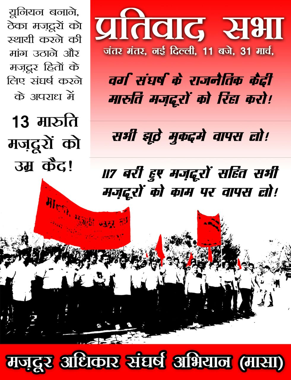 13 मारुति मज़दूरों को उम्र कैद की सजा के विरोध में प्रतिवाद सभा : 31 मार्च, जंतर मंतर, नई दिल्ली