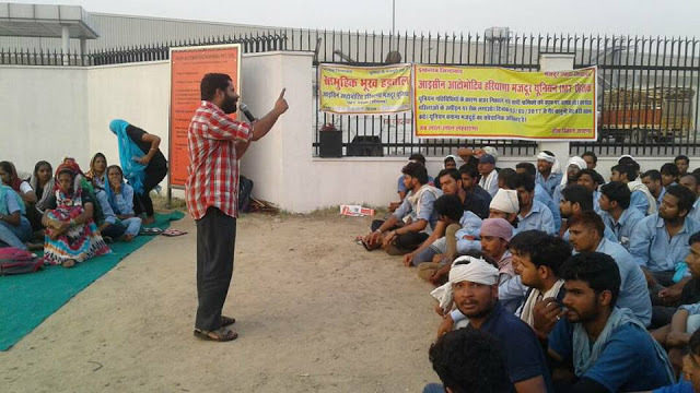 हरियाणा : पिछले 15 दिनों से आईसीन कंपनी के मजदूर अपने अधिकारों के लिए हड़ताल पर
