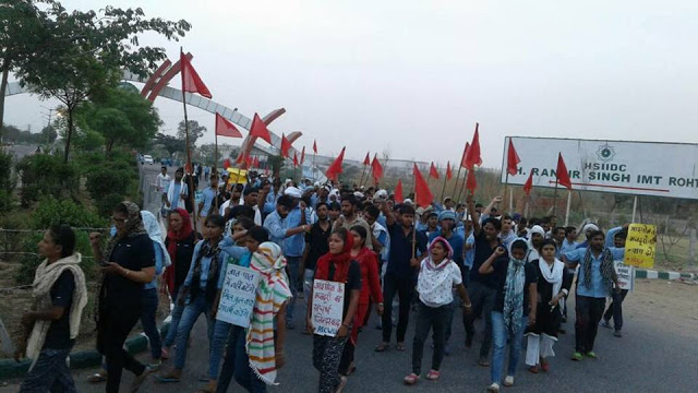 17 मई 2017; हरियाणा के रोहतक शहर स्थित आईसन कंपनी के मजदूर अपने संघर्ष के 15वे  दिन भी कड़ी धूप में टिके रहे आज लू और गर्मी के कारण 6 साथियों की तबीयत बिगड़ गई जिसमें 4 पुरुष साथी और दो महिला साथी शामिल थी इसके अलावा दो मजदूर साथियों की हालत ज्यादा गंभीर होने के कारण उन्हें रोहतक पीजीआई में दाखिल करना पड़ा जिनके नाम विश्वजीत और प्रताप है आज सुबह फिर से उपायुक्त कार्यालय से फोन आया बातचीत के लिए उपायुक्त महोदय ने बातचीत की कल वह नहीं मिल पाए थे उपायुक्त महोदय ने बताया कि आप का मामला श्रम विभाग चंडीगढ़ में संप्रेषित कर दिया गया है जल्द ही उसका निपटारा किया जाएगा उपायुक्त महोदय ने 2 दिन का और समय मांगा है इसके अलावा आइसन के मजदूर शहर के अन्य मजदूरों और संगठनों से बातचीत कर रहे हैं ताकि आगे बढ़ी आंदोलनात्मक कार्रवाई की जा सके आज शाम को आईएमटी परिसर के अंदर जुलूस निकाला गया ।