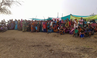ग्राम घोगलगाँव में पुलिस बल का आना जाना लगा रहा जिसका सैकड़ों विस्थापित महिला पुरुषों ने जोरदार नारों के साथ विरोध किया।