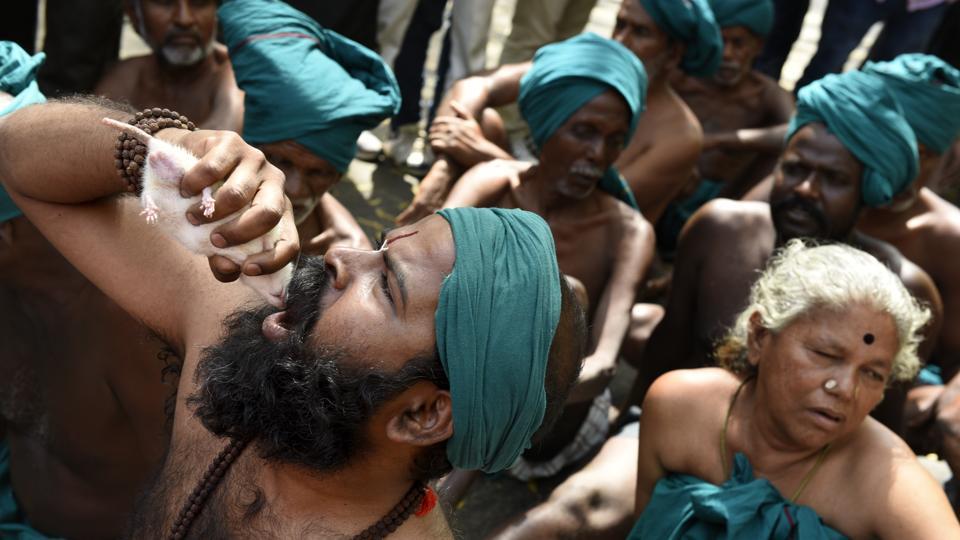 जंतर मंतर पर बैठे तमिलनाडु के किसान अब नए तरीके से विरोध प्रदर्शन कर रहे हैं। हाल में उन्होंने एक शख्स को प्रधानमंत्री नरेंद्र मोदी का मुखौटा पहनाया और फिर वहां बैठे सारे किसानों पर उससे कोड़े लगवाए। कोड़े मार रहे शख्स ने प्रधानमंत्री नरेंद्र मोदी का मुखौटा पहनने के अलावा उनकी तरह के कपड़े भी पहन रखे थे। प्रदर्शन कर रहे किसानों ने हिंदुस्तान टाइम्स से बात करते हुए कहा, ‘हम लोगों को नजरअंदाज करके मोदी ने बता दिया कि वह हम लोगों को दिल्ली से भगाना चाहते हैं, कभी-कभी तो हमें लगता है कि इससे अच्छा तो हम लोगों को गिरफ्तार कर लिया जाए।’ नेशनल साउथ इंडियन रिवर लिंकिंग फार्मर के प्रदेश अध्यक्ष पी आय्याकन्नू ने कहा कि कोड़े की मार झेलने के लिए 25 किसान अपने आप सामने आए। लेकिन 23 पिटाई की मार को ज्यादा देर झेल नहीं पाए।