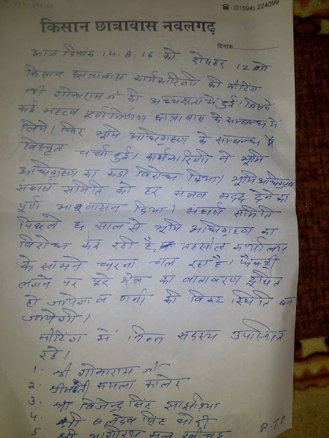 29 अगस्त 2016 को नवलगढ़ में भूमि अधिग्रहण के खिलाफ रैली में राजस्थान के अलावा अन्य राज्यों से किसान-मजदूर संगठनों एवं नागरिक अधिकार संगठनों के प्रतिनिधि भाग लेगे ।