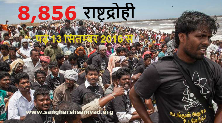 तमिलनाडु के कूडनकुलम में 8,856 से अधिक लोग देशद्रोह और भारतीय राज्य के खिलाफ युद्ध छेड़ने जैसे मुकदमों में फंसाए गए हैं. आज़ादी के बाद देशद्रोह के मुकदमे इतनी बड़ी संख्या में कूडनकुलम शांतिपूर्ण आंदोलन के खिलाफ लगाए गए हैं, इससे ही यह पता चलता है कि आज की सरकार का लोगों के जीवन व स्वास्थय, प्राकृतिक संसाधनों और उनकी जीविका तथा सुरक्षा को लेकर कोई भी सरोकार नहीं बचा है. इदिनथाकारी गाँव, जिसकी आबादी 10,000 है, अक्टूबर 2011 से गाँव के लोग धारा 124(ए) झेल रहे हैं। इस गांव के लोगों पर देशद्रोह का फर्जी मुकदमा कूडनकुलम परमाणु संयंत्र के खिलाफ प्रदर्शन करने की वजह से लगाया गया है। 5 सितंबर को कूडनकुलम परमाणु प्लांट विरोधी आंदोलन के अगुवाकर एस. पी. उदयकुमार ने सर्वोच्च न्यायालय में धारा 124(ए) यानि की राष्ट्रद्रोह के मुकदमे में जीत हासिल की किंतु अभी भी 140 से ज्यादा देशद्रोह के फर्जी केस यहाँ लोगों पर दर्ज हैं। 5 सितंबर को सर्वोच्च न्यायालय के इस कथन के बाद की की सरकार की आलोचना करना देशद्रोह नहीं है, देश में एक बार फिर सरकार द्वारा अपने खिलाफ उठने वाली आवाजों को राष्ट्रद्रोह के नाम पर दबाए जाने के सच को जनता के सामने लाकर रख दिया है। हम यहां पर कुडनकुलम परमाणु संयंत्र के विरोध में राष्ट्रद्रोह का आरोप झेल रहे 8,856 गांववालों की स्थिति के संबंध में 12 सितंबर को इंडियन एक्सप्रेस में प्रकाशित अरुण जनार्दन की रिपोर्ट (चार भागों में ) प्रकाशित कर रहे हैं। संघर्ष संवाद के लिए इसे राहुल त्रिवेदी ने हिंदी में अनुवाद किया है;