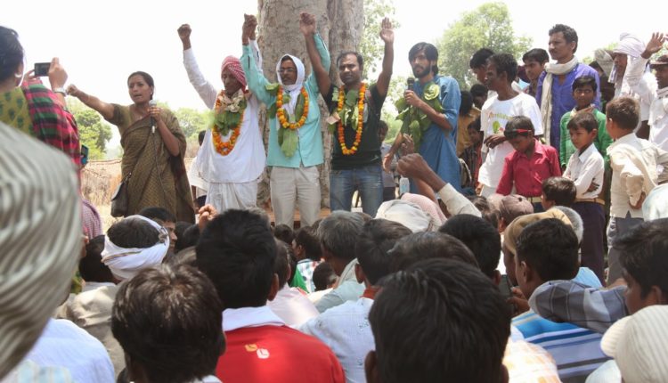 सिंगरौली। 5 जून 2014। महान जंगल क्षेत्र के ग्रामीण एक बार फिर पुलिस-प्रशासन और कंपनी के साझेदारी के खिलाफ खड़े हुए। वन सत्याग्रही बेचनलाल साह के जेल से बाहर आने के बाद आज अमिलिया में उनके स्वागत में एक सभा का आयोजन किया गया। इस सभा में पर्यावरण दिवस के अवसर पर ग्रामीणों ने महान जंगल को बचाने का संकल्प भी लिया।