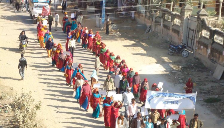 नवलगढ़ की धरती पर बिड़ला, बाँगड़ और आइसीएल समूह ने सीमेंट प्लांट, खनन एवं पॉवर प्लांट लगाने का प्रपोजल राजस्थान सरकार को 2007 के ’रीसर्जेण्ट राजस्थान पार्टनरशिप सम्मिट’ में दिया था क्योंकि इस इलाके में तकरीबन 207.26 मिलियन टन चूने के पत्थर का भंडार है। किसानों ने साफ तौर पर कहा कि यह जमीन अत्यधिक उपजाऊ है, हम यह जमीन किसी भी कीमत पर नहीं देंगे। पिछले करीब 240 दिन से उनका धरना चल रहा है। तहसील, जिला तथा विधान सभा तक पर प्रदर्शन तथा सर्वदलीय सभायें करके किसान अपना मंतव्य व्यक्त कर चुके हैं। लेकिन सरकार ने अभी तक दमनात्मक रूख ही अपना रखा है। आंदोलन की एकता तथा सफलता का अंदाज इसी बात से लगाया जा सकता है कि एक छोटी सी रैली या प्रदर्शन करना हो तो 7-8 हजार किसान स्वतः स्फूर्त ढंग से अपने आप आ जाते हैं।