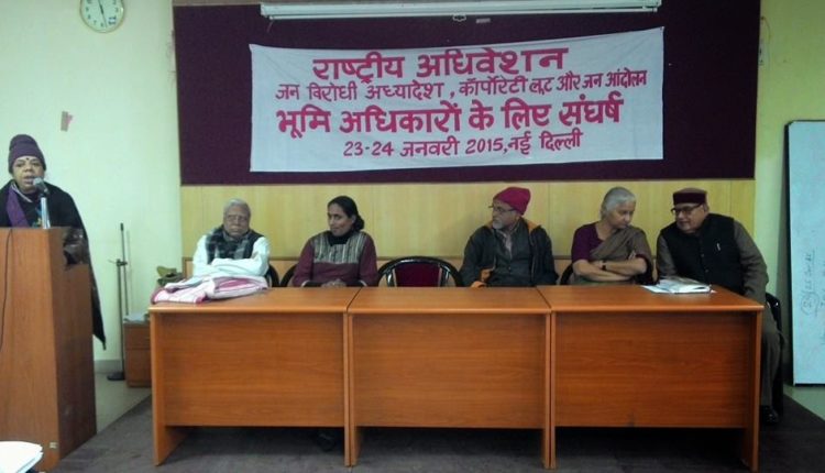 गुजरी 23-24 जनवरी 2015 को केंद्र सरकार द्वारा वर्ष 2014 के आखरी हफ्ते में लाये गए भूमि अधिग्रहण अध्यादेश के विरोध में जनान्दोलनों के राष्ट्रीय समन्वय (NAPM), अखिल भारतीय वन-जन श्रमजीवी यूनियन (AIUFWP), जनसंघर्ष समन्वय समिति, छत्तीसगढ़ बचाओ आन्दोलन, इंसाफ, दिल्ली समर्थक समूह एवं अन्य संगठनों ने मिलकर दिल्ली के दीन दयाल मार्ग स्थित नेहरु युवा केंद्र में दो दिवसीय राष्ट्रीय अधिवेशन का आयोजन किया. सभा में उत्तर प्रदेश, उत्तराखंड, बिहार, झारखण्ड, राजस्थान, महाराष्ट्र, मध्य प्रदेश, छत्तीसगढ़, पश्चिम बंगाल, हिमाचल प्रदेश, हरियाणा के किसान और मज़दूर संगठनों के प्रतिनिधि शामिल हुए. इस अधिवेशन के पहले दिन केंद्र सरकार द्वारा लाये गए अध्यादेशों पर विस्तारित चर्चा हुई और भू-अधिग्रहण अध्यादेश के विरोध में देश व्यापी प्रतिवाद खड़ा करने की योजना बनायी गयी, जबकि दूसरे दिन जन सभा आयोजित की गयी जिसमे विभिन्न राजनितिक दलों के नेताओं ने भू-अधिग्रहण के सम्बन्ध में अपने विचार रखे.
