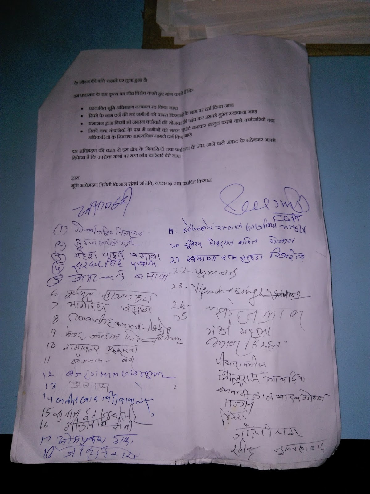 सविनय निवेदन है कि हम नवलगढ़ के निवासी पहले भी कई बार आपसे अपनी जमीनें बचाने के लिए गुहार कर चुके हैं और नवलगढ़ एसडीएम कार्यालय के सामने पिछले 6 सालों से लगातार धरने पर बैठे हुए हैं। पिछले 6 सालों से जमीन अधिग्रहण के लिए किसानों के न तैयार होने के बावजूद सरकार लगातार एकतरफा कार्यवाही करती जा रही है।