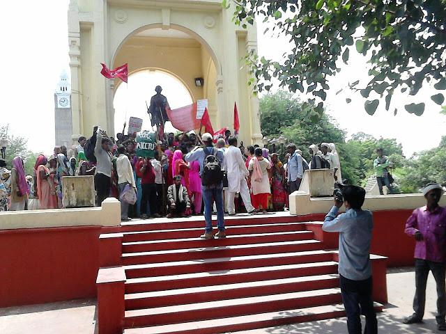 गाॅधी प्रतिमा पर आयोजित जनसभा को अशोक चैधरी, राजेन्द्र मिश्रा, रवीन्द्र सिंह, रोमा, निबादा राणा, मातादयाल, गम्भीरा प्रसाद, सुरेन्द्र प्रसाद, रामचन्द्र राणा व राजकुमारी द्वारा जोशीले अन्दाज़ में केन्द्र सरकार व राज्य सरकार की अवैध भूमि अधिग्रहण करके बांध निर्माण, वनाधिकार कानून के असफल क्रियान्वयन, श्रमिक कानूनों के साथ छेड़-छाड़, विनाशकारी विकास योजनाओं, लगातार गरीब तबकों की कमर तोड़ती बढ़ती महंगाई जैसी जनविरोधी व मज़दूर विरोधी नीतियों के मुद्दों पर घेरते हुए खुले शब्दांे चेतावनी देते हुए सभा को सम्बोधित किया। इस सभा में ग्रामीण श्रमिक लोगों पर सरकार के दमनात्मक रवैये व महिलाओं पर हो रहे अत्याचारों के मुद्दे भी वक्ताओं द्वारा मज़बूती से उठाये गये। सभा का संचालन अमित मिश्रा ने किया।