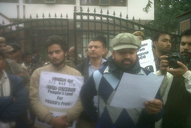 दिल्ली के उड़ीसा भवन पर आज सामाजिक संगठनों, कार्यकर्त्ताओं और छात्र-नौजवानों ने जगतसिंहपुर में पोस्को कम्पनी का विरोध कर रहे ग्रामीणों पर चल रहे बर्बर पुलिसिया दमन और किसानों की जबरन भूमि कब्जाने की सरकारी नीति के विरोध में प्रदर्शन किया. इस विरोध प्रदर्शन में संदीप ने कहा कि उड़ीसा पुलिस द्वारा 3 फ़रवरी, 2013 को सुबह के लगभग 4 बजे 12 प्लाटूनों ने नुआगांव में पोस्को संयंत्र का विरोध कर रहे स्थानीय लोगों पर हमला बोल दिया गया. इस कतिलाना हमले में कई महिला-बच्चें-बुजर्ग घायल हुए हैं. विजय प्रताप, असलम, संजीव कुमार, मधुरेश आदि वक्तओं ने बर्बर पुलिसिया दमन का विरोध करते हुए मांग कि, की दोषी अधिकारियों के विरोध में कठोर कार्यवाही हो, गिरफ्तार किसानों को तत्काल रिहा किया जाय. साथ ही, किसानों की जबरन कब्जा कि जा रही ज़मीन पर रोक लगाई जाये.