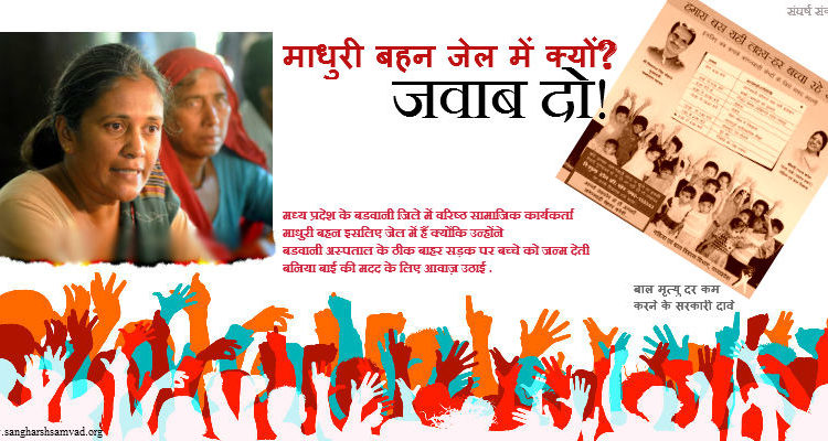माधुरी बहन ने जेल जाकर सरकारों तथा समाज का ध्यान उक्त महत्वपूर्ण मुद्दों की ओर आकृष्ट करने का प्रयास किया है। बड़वानी जिले के सभी थानों पर संगठन का धरना जारी है। 30 मई को माधुरी बहन की पेशी है। उस दिन बड़ा फैसला होना है, अदालत के अंदर और बाहर भी। प्रशासन और पुलिस के संवेदनहीन रुख से आदिवासी आक्रोशित हैं तथा आर-पार का संघर्ष करने का मन बनाये हुये हैं। संगठन चाहता है कि पुलिस प्रशासन कार्यकर्ताओं पर फर्जी मुकदमें दर्ज करने की बजाय आदिवासियों की समस्याओं को हल करने के लिये आगे आये। देखना यह है कि सरकार किस तरह इस परिस्थिति से निपटती है। चुनाव नजदीक हैं। पुलिस दमन का विकल्प सरकार के लिये महंगा पड़ सकता है। सरकार को कलेक्टर, एसपी को आदिवासियों के साथ संवाद के लिये निर्देशित करना ही एकमात्र जनतांत्रिक विकल्प है। भाजपा सरकार अब तक साढ़े नौ बरसों में ढ़ाई लाख से अधिक मुकदमें वापस ले चुकी है तथा इससे कई गुना मुकदमों में मध्य प्रदेश पुलिस द्वारा खात्मा दर्ज किये गये हैं। क्या सरकार जागृत आदिवासी दलित संगठन के कार्यकर्ताओं पर लगाये गये फर्जी मुकदमें वापस लेने का फैसला कर भ्रष्टाचारियों के खिलाफ कडी कार्रवाई करने तथा स्वास्थ्य सेवाओं में कमियों को दूर करने की इच्छा शक्ति दिखलायेगी ?