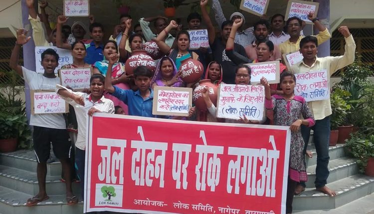 भूजल दिवस के अवसर पर 10 जून 2018 को प्रधानमंत्री आदर्श ग्राम नागेपुर में ग्रामीणों ने कोका कोला प्लांट मेहदीगंज द्वारा किये जा रहे अंधाधुंध जलदोहन के खिलाफ धरना प्रदर्शन किया। लोक समिति द्वारा नागेपुर के नंदघर के सामने धरना प्रदर्शन आयोजित किया गया। गांव की दर्जनों महिलाओं ने सर पर घड़ा लेकर प्रदर्शन किया। लोगों ने किसानों ने मचाया शोर, कोका कोला पानी चोर, दूध दही के देश में कोका कोला नही चलेगा, कोका कोला भगाओ पानी बचाओ, जल दोहन पर रोक लगाओ, कोका कोला का लाइसेंस रद्द करो आदि नारे लगाये।
