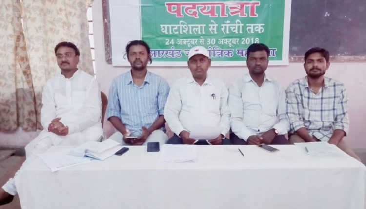 झारखण्ड : रघुवर सरकार की खुली लूट के खिलाफ पदयात्रा का ऐलान; घाटशिला से राँची 24 से 30 अक्टूबर 2018