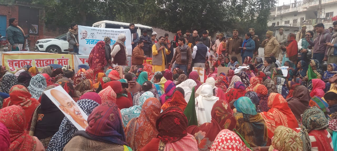 19 दिसंबर 2025 को साझा संस्कृति मंच के नेतृत्व में शास्त्री घाट वरुणापुल कचहरी पर मनरेगा कानून में प्रस्तावित बदलाव के विरोध में जनसभा आयोजित की गई। राष्ट्रपति को सम्बोधित ज्ञापन सभास्थल पर एसीएम द्वितीय को पढ़कर सौंपा गया। शास्त्री घाट स्थित सभास्थल, वाराणसी में जनसभा आयोजित कर केंद्र सरकार के प्रस्ताव के खिलाफ मजदूर यूनियन के सदस्यों की बड़ी संख्या मौजूद रही। इस सभा में वाराणसी के ग्रामीण इलाक़ों से आए मज़दूर, किसान, महिलाएँ, मेहनतकश जनता और शहर के सामाजिक संगठनों ने भाग लिया। सभी ने मनरेगा का नाम बदलकर उसके अधिकार-आधारित चरित्र को खत्म करने वाले नए विधेयक के ख़िलाफ़ जनसभा में मज़दूर-विरोधी बिल की प्रतियां जलाकर कड़ा विरोध दर्ज किया गया।
